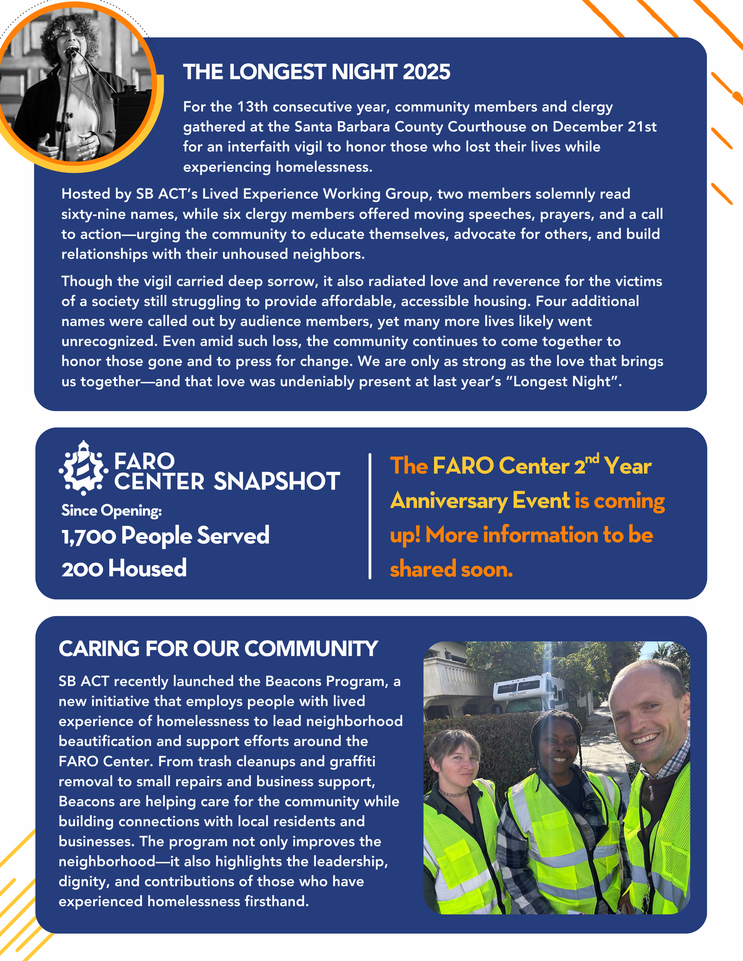 The Santa Barbara Alliance for Community Transformation exists to equip the community to lovingly engage the marginalized while actively working for the betterment of their physical, spiritual, emotional, and mental needs.